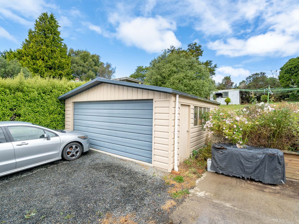 The double garage offers extra storage space and there is a concreted patio at the rear before the steps leading to the spacious rear yard.