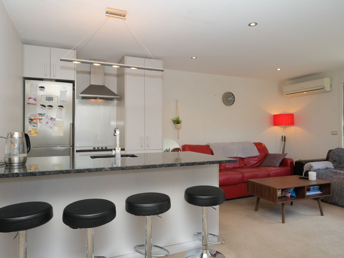 Downstairs you will find the sun drenched open plan kitchen, dining and lounge that flows seamlessly to the private enclosed courtyard. There is also a full bathroom on this level. Upstairs are two spacious double bedrooms plus the second bathroom. Great views. Being fully double glazed and capturing loads of sunshine mean you will hardly need to use the heatpump. Ample parking for three vehicles but you might instead enjoy the level walk or cycle into town.